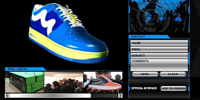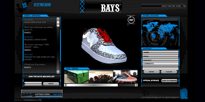 Full flash website driven by XML including, photo gallery, vendor finder, and contact. Site also featured a user controlled 3D shoe viewer. I modeled and textured the shoes in 3 different colorways.