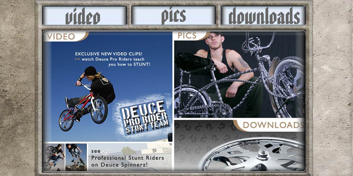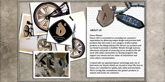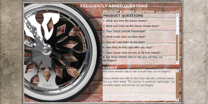 Flash Website for the world's first bicycle spinner wheels. This site includes an exclusive e-commerce store, flash animated banners, custom video player and gallery, a download area for enthusiasts, and much more.