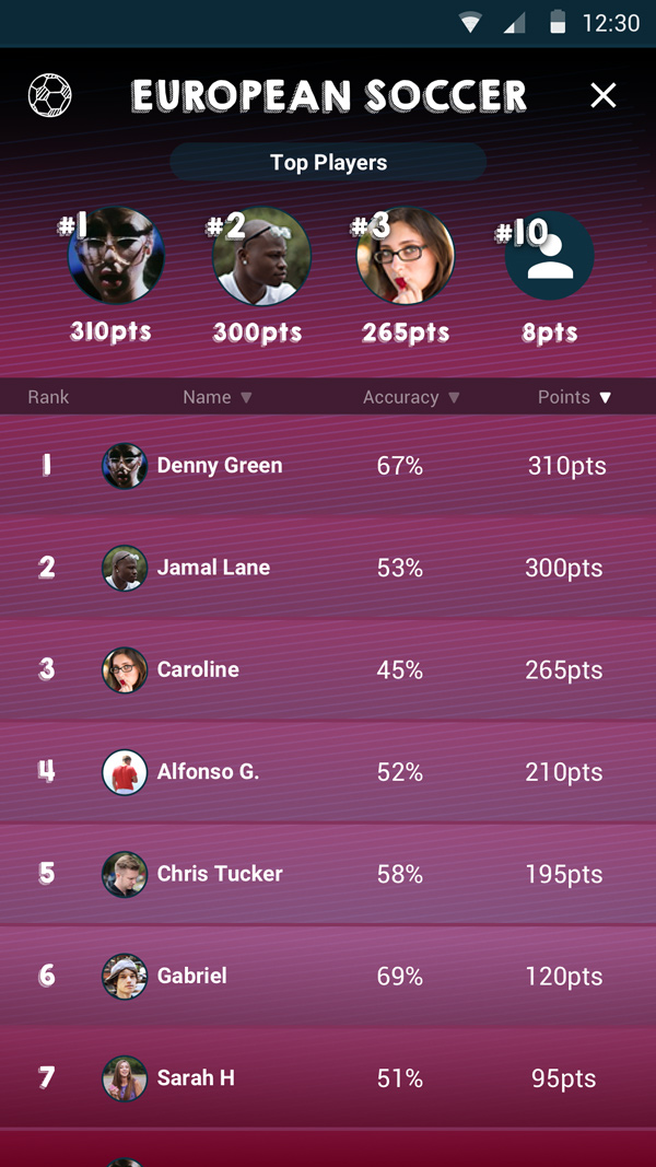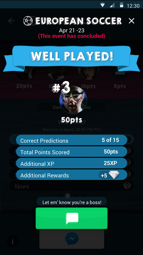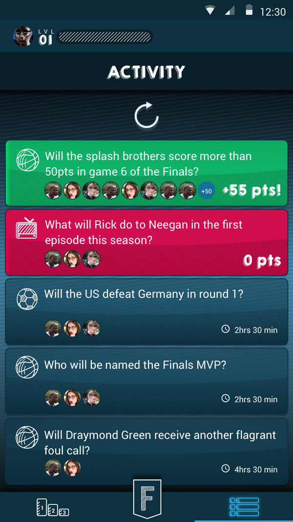 One of the major design challenges we faced early on was determining if FRIENDUEL was going to be an "app" or a "game". Luckily for our team, I have deep experience in casual games and I leveraged that experience to help our team build something of a hybrid. :) We used lightweight game mechanics like simple level progressiion, leaderboards, and we even planned to grant some flavorful player titles and achievements to players who reached high prediction accuracy across a certain category. I suggested we throw in the ability to taunt your friends on their picks with animated gifs utilizing the GIFY api, and rewarding level up animations and other cool feedback animations helped to make the product feel fun while encouraging friendly competition and compulsive behavior. Creating a product from scratch has a unique set of challenges, especially when the product's user experience is intended to heavily rely on frequent social interactions. We came up with multiple solutions to help solve the empty room problems, such as funny GIFY inspired invite flows to clever push notifications that allowed the user to send trolling gifs until they accepted an invitation to play.