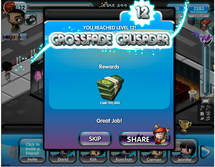 Nightclub City was the first game on facebook that allowed you to create and manage your own night club. You can hire bartenders, design your club with furniture and decor, and spin the latest music from popular and indie artists. Plus, with millions of players partying in Nightclub City, you never know who you'll meet. Building the UI, effects and contributing contextual flavor for this game was indeed an incredible experience.